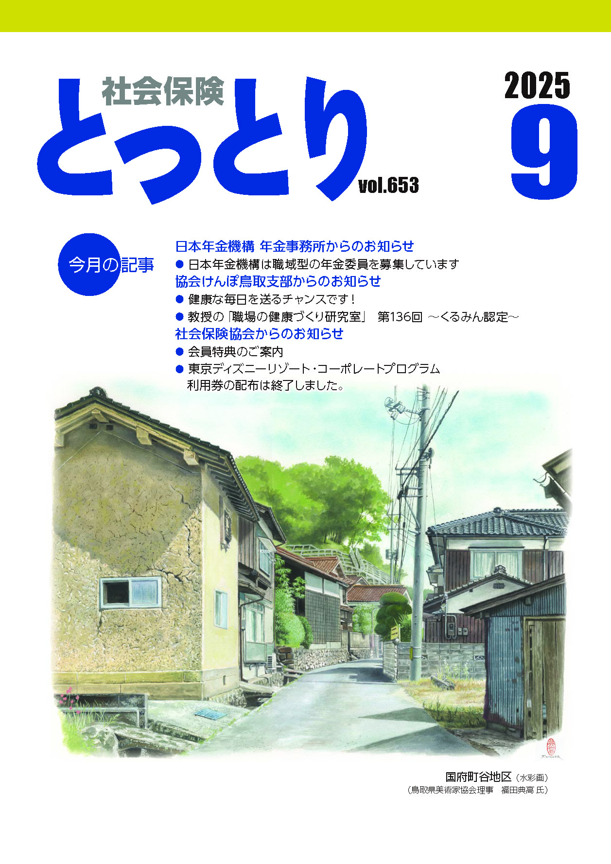 社会保険制度の内容等を周知するため、広報紙「社会保険とっとり」を毎月発行し事業所に配布しています。